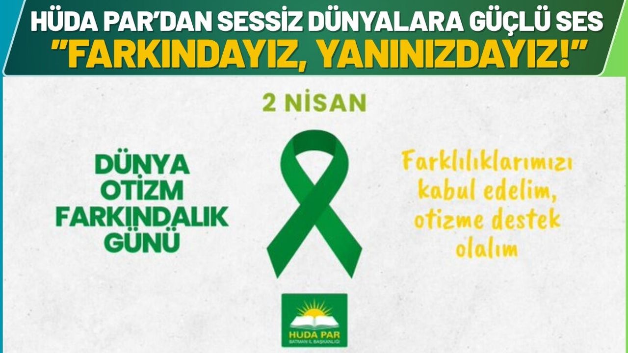 HÜDA PAR Batman İl Başkanlığı tarafından yapılan açıklamada, otizmin bir eksiklik değil, bir farklılık olduğu hatırlatılarak şu ifadelere yer verildi: