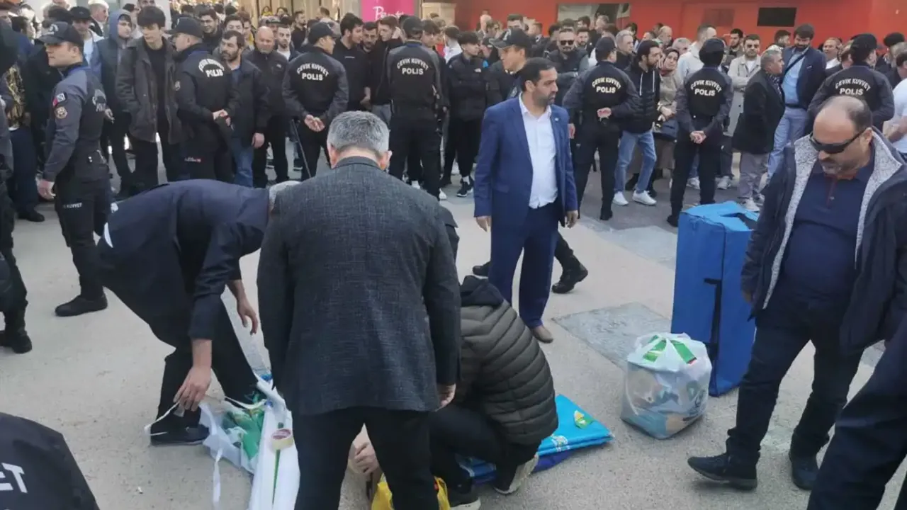 Partililere ve parti materyallerine saldırıda bulunan gruba polis müdahale etti. (İLKHA)