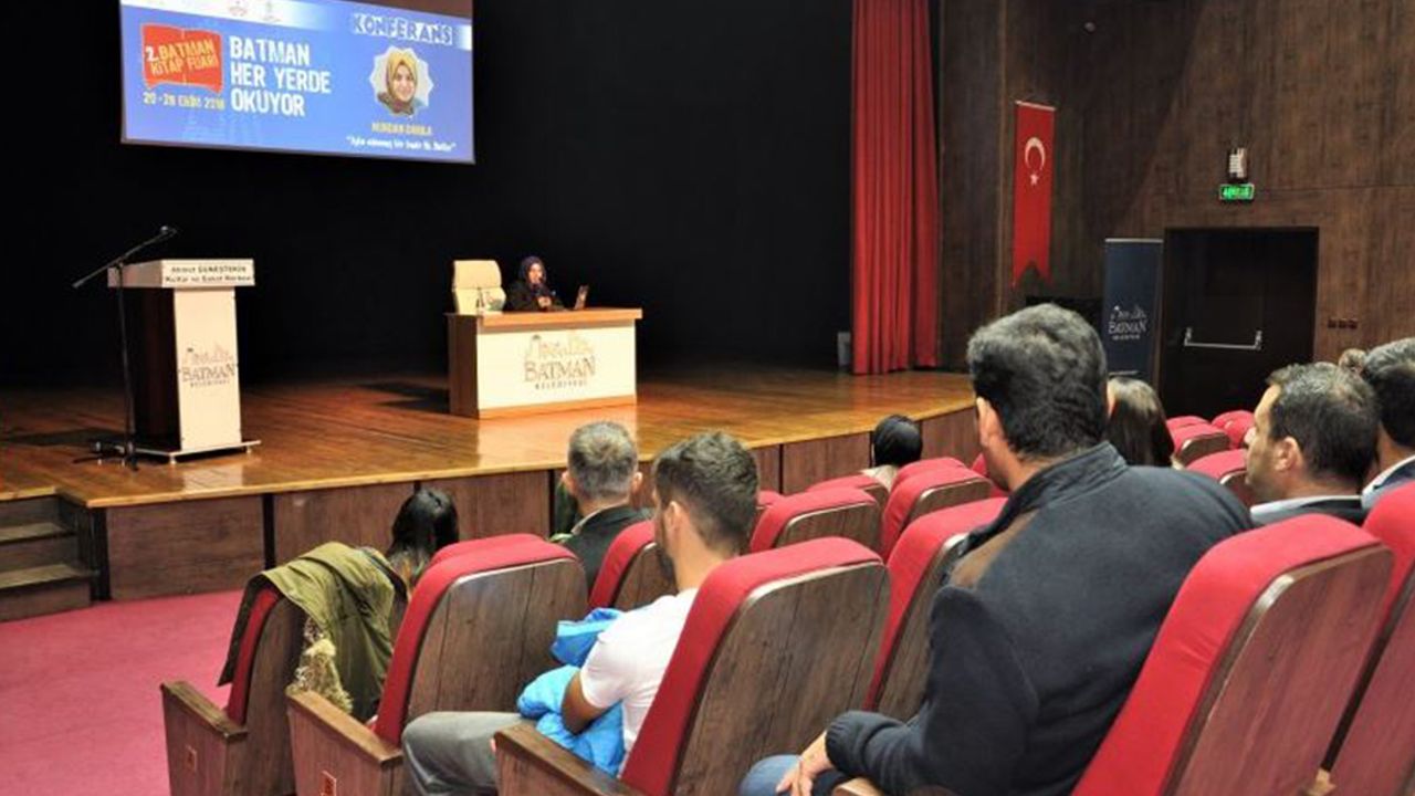Batman Belediyesi Ahmet Güneştekin Kültür Merkezi Konferans Salonunda gerçekleşen ‘Aşka Adanmış Bir Ömür Hz. Hatice’ konulu konferansa vatandaşlar katıldı. Çocuk yaşta yazarlığa başlayan yazar Nurdan damla konferansında Hz.Hatice (r.a)’nin çocukluk yıllarından vefatına kadar geçen ömrünü örnekler vererek anlattı. Konuk Yazar Hz. Hatice’nin hayatından ve yaşam tarzından alınacak derslere dikkat çekerek çocuk yaştan vefat edinceye kadar ilim öğrenen ve araştırmacı kişiliğinin yanı sıra tüm zenginliğini insanlık yararına kullanmaktan asla geri durmayan kişiliğini örneklerle anlattı. Yazar Nurdan Damla konferansın ardından kitap fuarında kitaplarını imzaladı. MEHMET EMİN URAZ