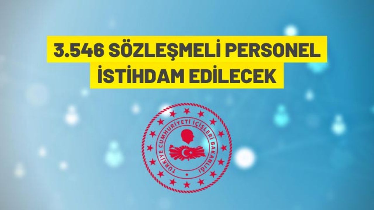 İçişleri Bakanlığı, 657 sayılı Devlet Memurları Kanunu ve Sözleşmeli Personel Çalıştırılmasına İlişkin Esaslar uyarınca merkez ve taşra teşkilatı emrinde istihdam edilmek üzere 3.546 personel alacak.ÖSYM tarafından 2020 yılında yapılan Kamu Personel Seçme Sınavı (B) Grubundan lisans mezunları için KPSSP3, ön lisans mezunları için KPSSP93 ve lise mezunları için KPSSP94 puan türünden en az 60 ve üzerinde KPSS puanı almış olmak kaydıyla, adayların tercih sıralamasına göre ilan edilen pozisyon sayısının en fazla 5 katı aday değerlendirilmeye alınacak.Başvurular; 17-21 Haziran 2022 tarihleri arasında www.icisleri.gov.tr internet sitesindeki “Duyurular” bölümünde yayımlanacak olan “İçişleri Bakanlığı Aday Profil Bilgileri Düzenleme ve Sınav Başvuru” linki aracılığıyla e-Devlet üzerinden elektronik ortamda alınacak.