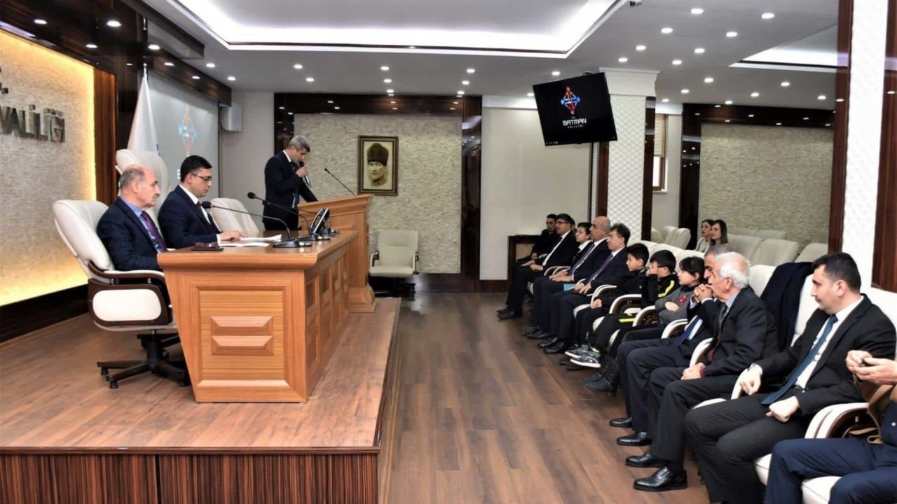 Müdürü Ümit Çiçek, Eğitim Müfettişleri Başkanı Hamit Aydın, Beşiri İlçe Milli