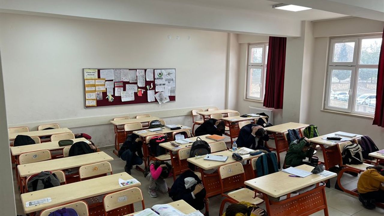 öğrenciler tüm okullarda saat 11.30’da sirenlerin çalmasıyla birlikte