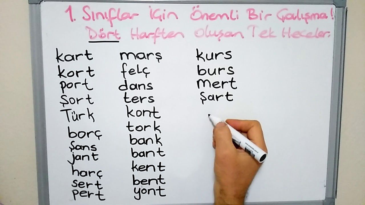 Şimdi, heceleme kurallarını göz önünde bulundurarak ve ilk hecesinin dört harf olmasını sağlayarak kelimeler bulmaya çalışalım. Türkçede genellikle bu tarz bir heceleme yapısı çok yaygın değildir. Çoğu iki heceli kelimenin ilk hecesi iki veya üç harften oluşur.