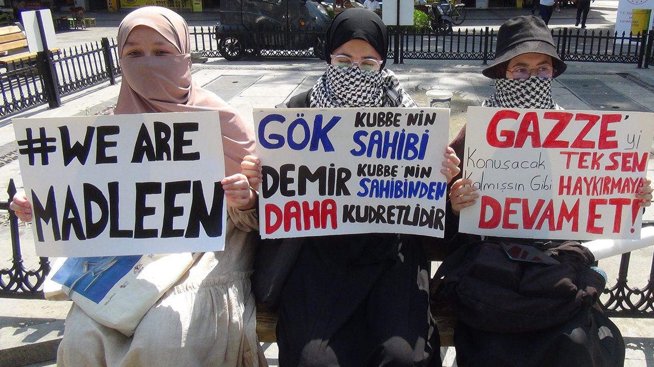 Yüsra ismindeki lise öğrencisi, Gazze'ye karşı insanlığın sınıfta kaldığına değinerek "Filistin şuan insanlık tarihinin akıl almayacağı bir şekilde israil zulmüne maruz kalıyor. Bu durum karşısında hiçbir şey yapmadan boş boş oturmak çok zorumuza gitti ve çok üzüldük. En azından bir şeyler yapalım dedik. Yüzde yüz etki oluşturmasa da burada oturma eylemi düzenledik. Bir farkındalık oluşturmaya çalışıyoruz." dedi.