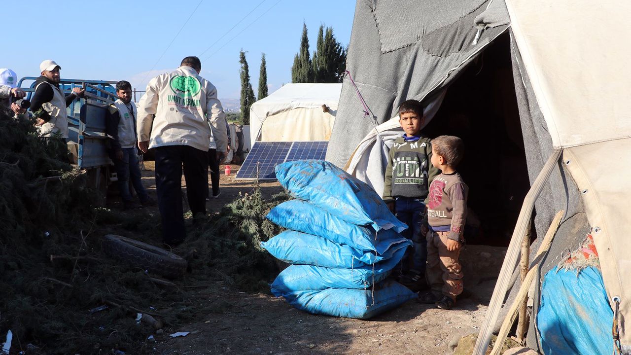 Yolun İyilik Olsun" şiarıyla Suriye'nin İdlib bölgesinde yardım çalışmalarına başlayan Umut Kervanı, önceki günlerde yaptığı, gıda, giyim, battaniye ve sıcak ekmek yardımının ardından şimdi de yakacak kömür ve sıcak yemek dağıtımında bulunarak yüzlerce ihtiyaç sahibinin yüzünü güldürdü.