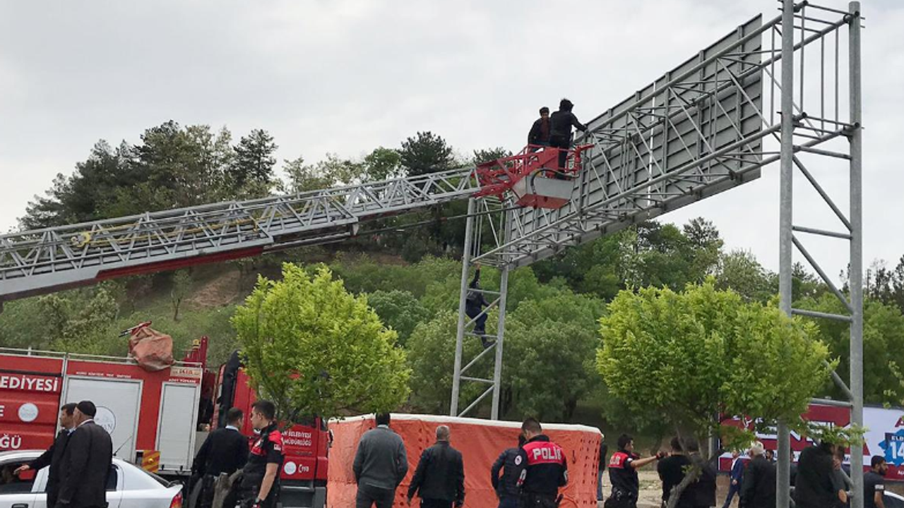 Uzun süren ikna çabalarının ardından şahıs aşağı indirildikten sonra, trafik akışı yeniden sağlandı.
