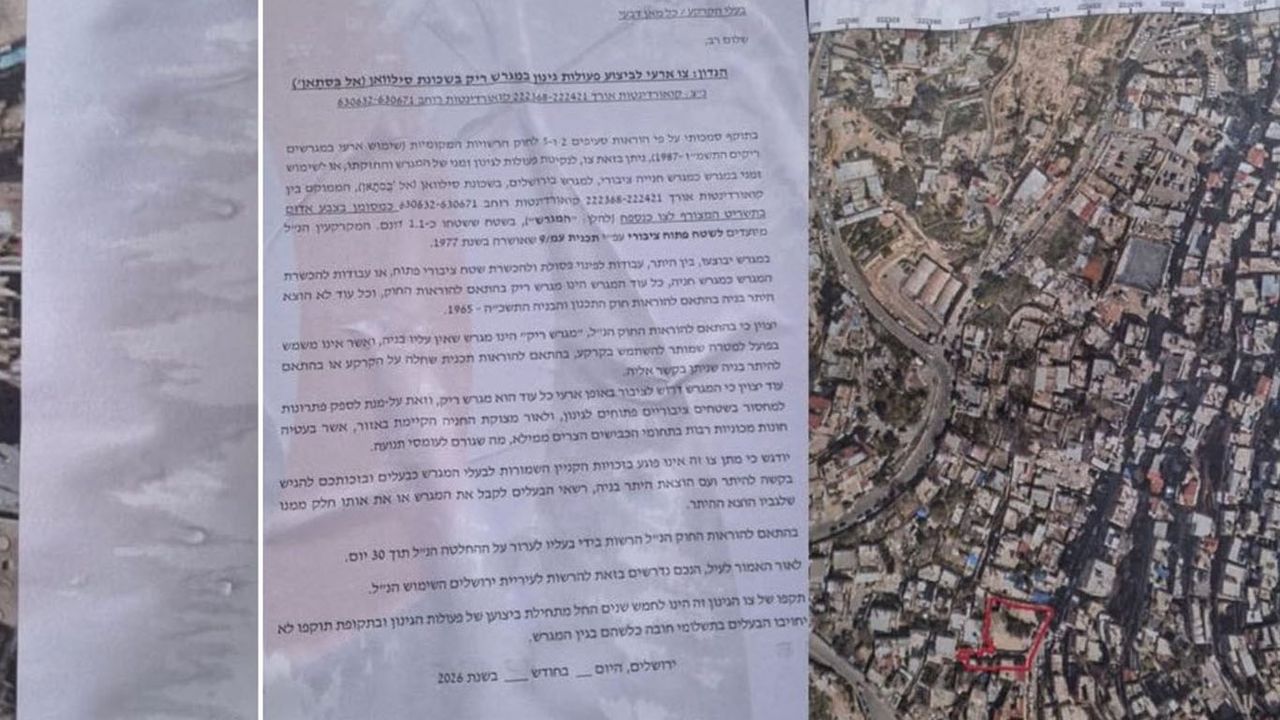 Siyonist rejime bağlı Kudüs Belediyesi, Silvan beldesinde yer alan Bustan Mahallesi sakinlerine, mahallede bulunan 1 dönüm 100 metrekarelik araziye el koymayı planladığını bildirdi. İşgalciler, bu adımı "peyzaj düzenlemesi ve otopark yapımı" gerekçesiyle savundu.