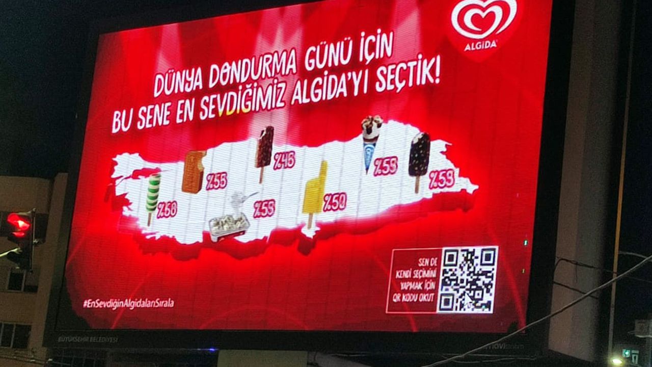 Şanlıurfa'da şehrin adeta kalbi konumundaki Rabia Meydanı'nda bulunan elektronik reklam panosunda siyonist işgal destekçisi firmanın reklamı yayınlandı.