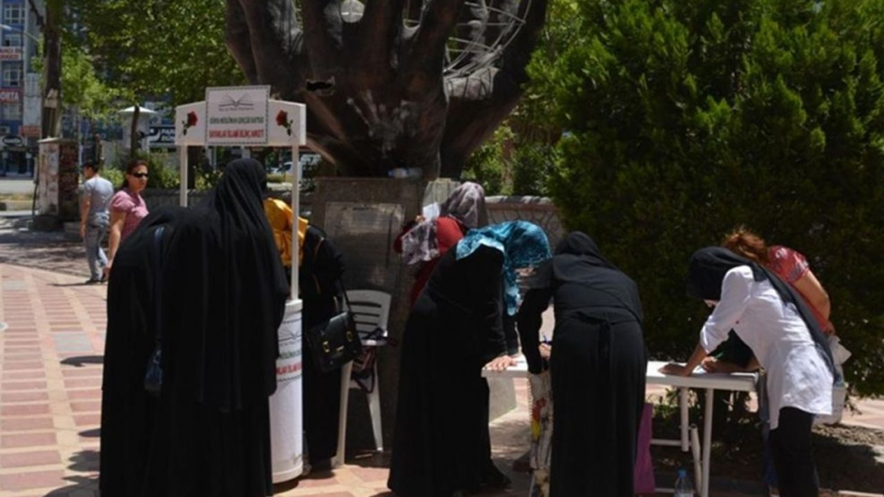 Kur'an Nesli Platformu tarafından hazırlanan 43 sorulu 'Genç Bayanlar İslami Bilinç Anketi' için platform gönüllüsü bayanlar tarafından Gülistan Caddesi İnsan Hakları Anıtı önünde stant açıldı.
