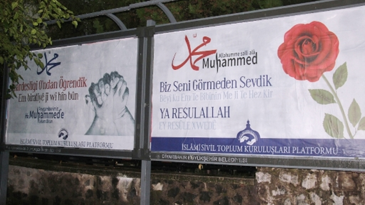 Yüzlerce sivil toplum kuruluşunun bir araya gelerek oluşturduğu İslami Sivil Toplum Kuruluşları Platformu, DBP'li Yenişehir Belediyesi'nin peygamber efendimize hakaret içerikli karikatürün yer aldığı afişleri billboardlara asmasına tepki olarak Diyarbakır'ın 55 noktasına 'Biz seni ancak alemlere rahmet olarak gönderdik' (Me tu şandî bes da ku ji heyînan re bibî rehmet) Enbiya 107. ayeti ve 'Biz seni görmeden sevdik Ya Resulallah' (Bêyî ku em te bibînin me ji te hez kir) sözünü içeren Kürtçe ve Türkçe yazılı olan afişleri astı.