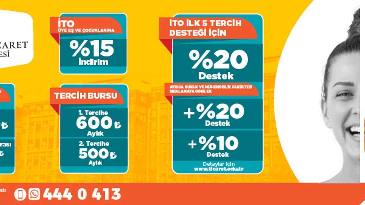 İstanbul Ticaret Odası da İstanbul Ticaret Üniversitesi’ni ilk beş tercihine yazarak kazananlara yüzde 20 oranında eğitim desteği sunacak. Hukuk ve Mühendislik Fakültesi’nde ise bu destek başarı sıralamasına göre yüzde 20 veya yüzde 10 artacak. İstanbul Ticaret Odası üyelerinin eş ve çocuklarına ise üniversite kaydında eğitim ücreti üzerinden yüzde 15 indirim uygulanıyor.