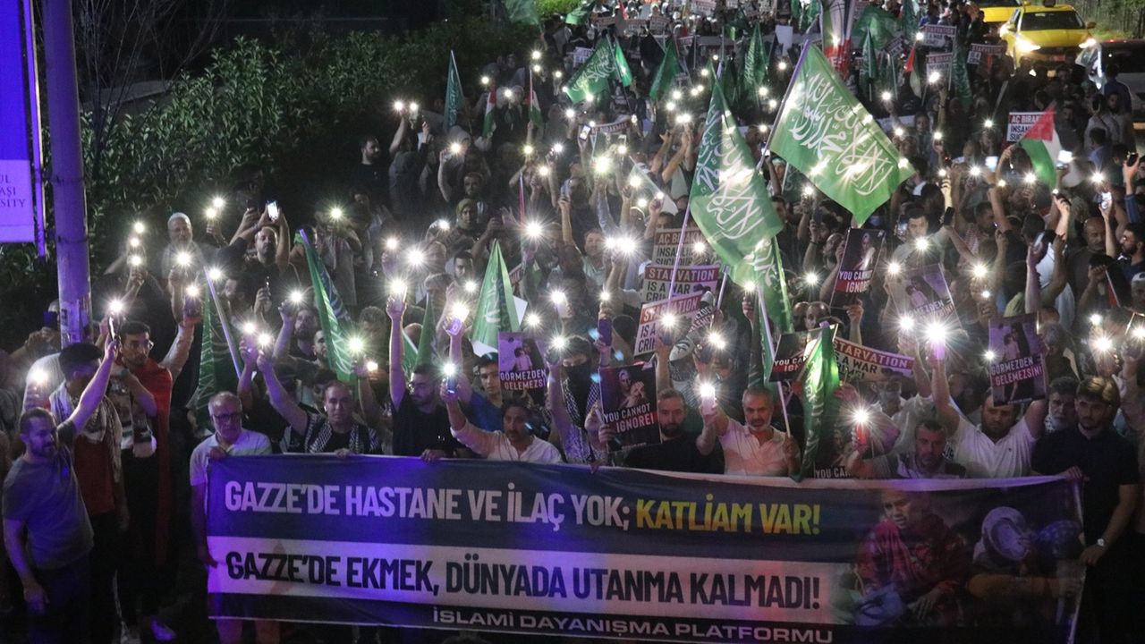 Beşiktaş Barbaros Hayrettin Paşa Camii'nde akşam namazında bir araya gelen binler, kıldıkları namazın ardından ellerinde Filistin bayrakları, döviz ve pankartlar ile kortej eşliğinde siyonist konsolosluğun bulunduğu plazanın önüne kadar yürüdü.