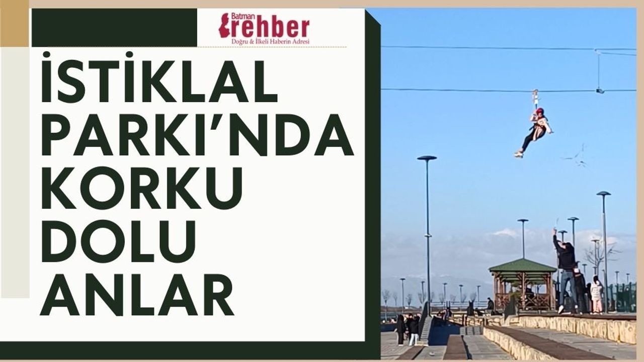 asılı kaldı. Zipline görevlilerinin uzattığı halatlara tutunarak iniş kulesine
