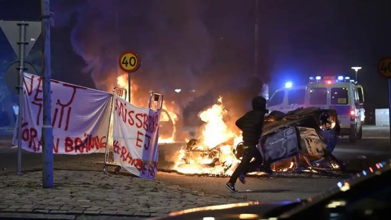Malmö emniyet teşkilatından yapılan açıklamada, pazar günü başlayan ve gece de süren protestolarda polislere taş atıldığı, onlarca aracın ve yer altındaki bir garajın ateşe verildiği belirtildi.