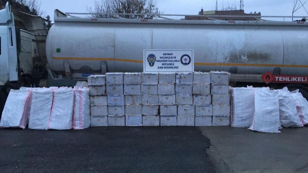 Batman Valiliği tarafından yapılan açıklamada, durdurulan bir yakıt tankerinde yapılan aramada piyasa değeri yaklaşık 336 bin TL olan toplam 55 bin 977 paket kaçak sigara ele geçirildiği belirtildi.