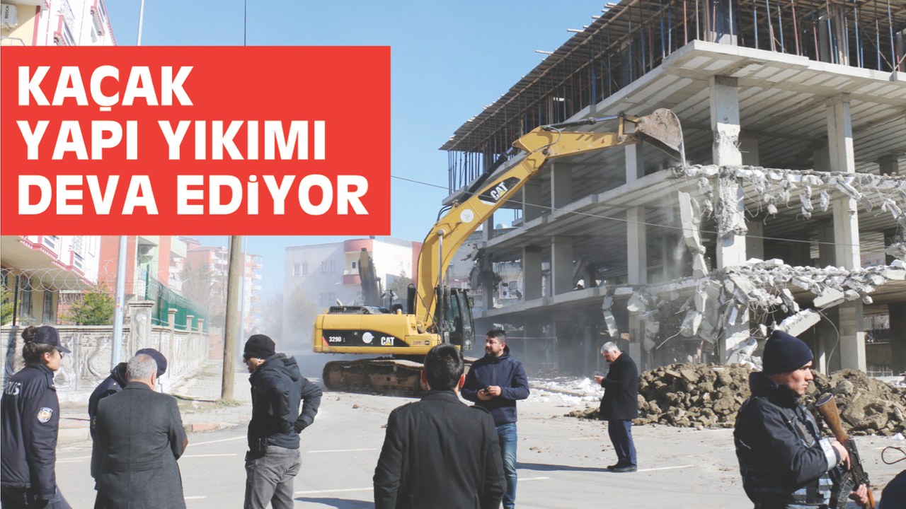 bağlı yıkım ekibi de; 2 ekskavatör, 1 kepçe, 6 kamyon ile kaçak yapının