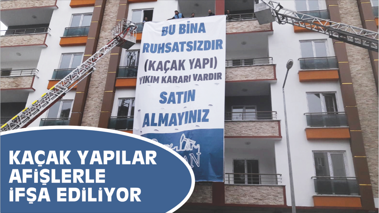 (Kaçak Yapı), yıkım kararı vardır. Satın almayınız” uyarısının yer aldığı