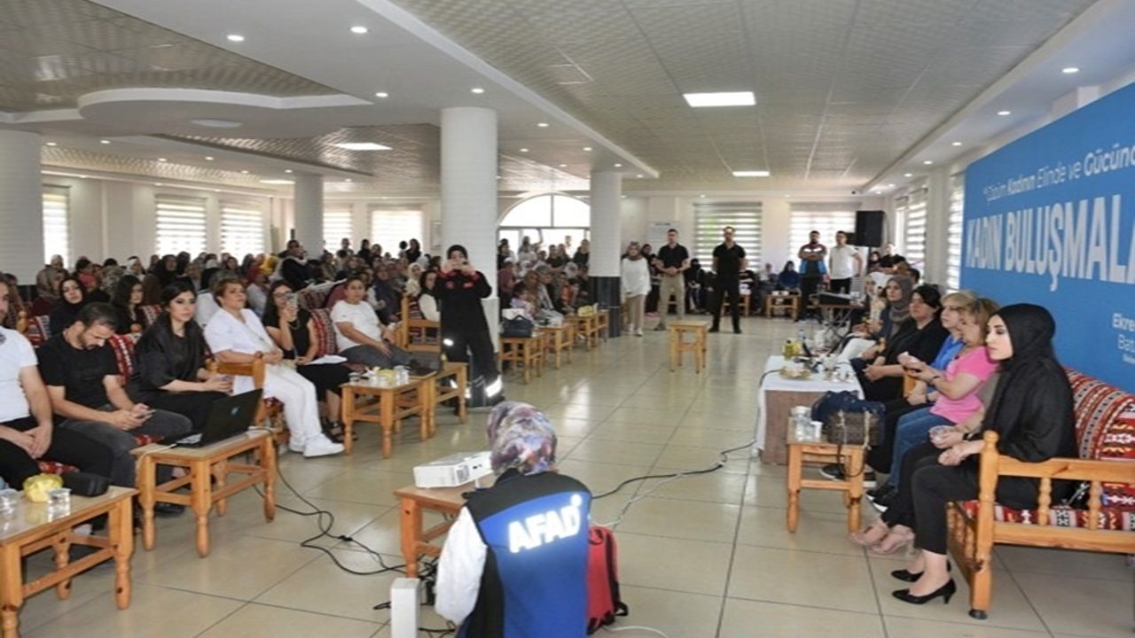 Kadın ve Aile Hizmetleri Müdürlüğü ile Afet İşleri Müdürlüğü iş birliğinde yürütülen çalışmalar kapsamında mahallelerde yaşayan kadınlara eğitim verildi.