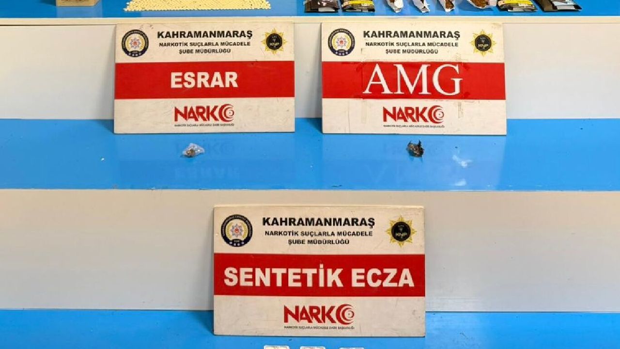 Kahramanmaraş Emniyet Müdürlüğü Narkotik Suçlarla Mücadele Şube Müdürlüğünce 21 Şubat'ta gerçekleştirilen çalışmada, 885 captagon hap, 229,40 gram sentetik kannabinoid (bonzai), 0,69 gram sentetik kannabinoid (AMG) hammaddesi, 2,73 gram takoz esrar ve 28 sentetik ecza hap ele geçirildi.