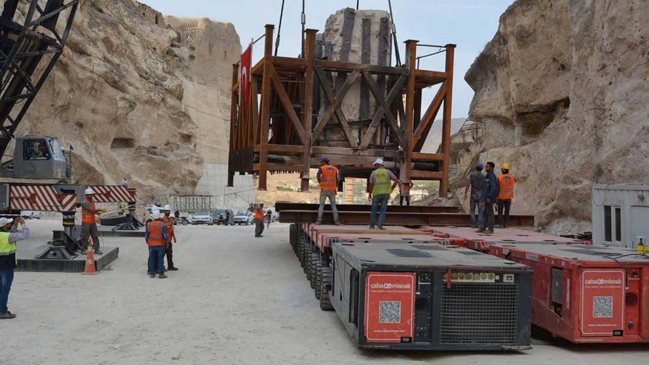 Hasankeyf ilçesindeki tarihi eserlerin taşınma işlemleri devam ediyor. Hasankeyf'in önemli tarihi eserlerinden olan Süleyman Han tarafından 1400'lü yıllarda yaptırılan 600 yıllık Hasankeyf Kalesi Orta Kapı'nın 2'nci parçası da Tahrikli Modüler Taşıyıcı (SPMT) ile bugün geçici depo sahasına taşındı.