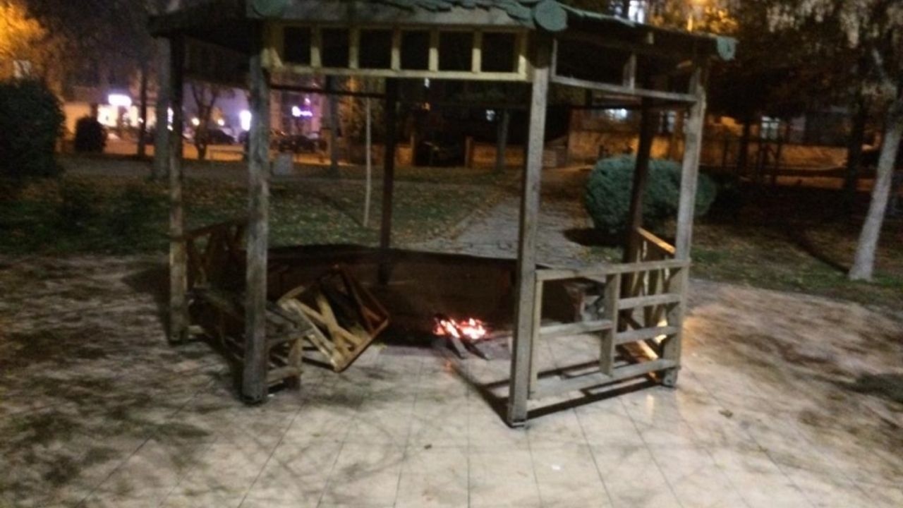 su fıskiye sistemlerinin, bankların, kamelyaların kırılarak yakıldığını, yine
