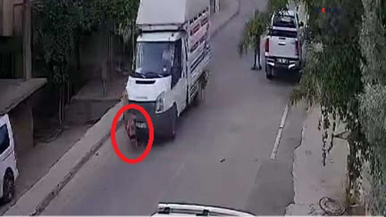 Sürücünün fark etmediği çocuk kamyonetin altında kaldı. Kamyonetin çarpıp üzerinden geçtiği çocuk, ayağa kalkarak olayın şaşkınlığını yaşadı. Küçük çocuğu görenler ise koşarak yanına geldi.