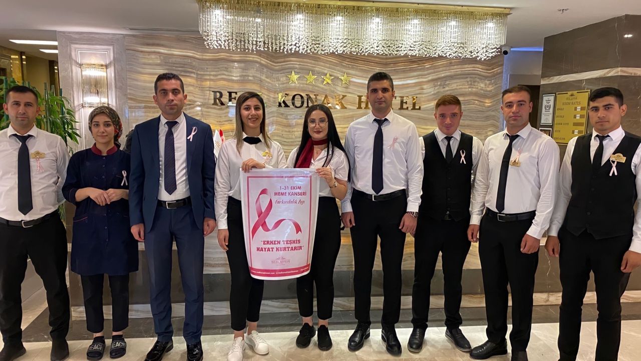 artırmak için otel çalışanları da bu ay pembe kurdele takıp misafirlerini meme