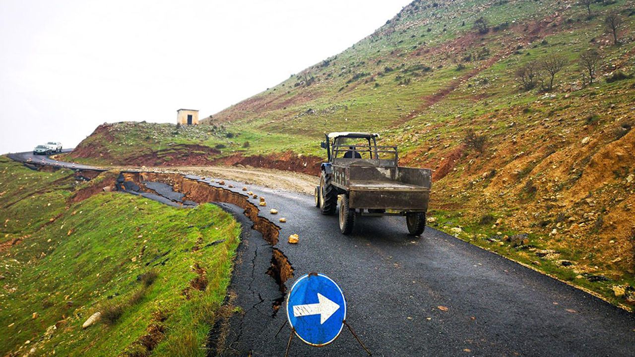 etkili olan yağışlar nedeniyle Aydınlı (Kamerin) köy yolunda heyelan (toprak