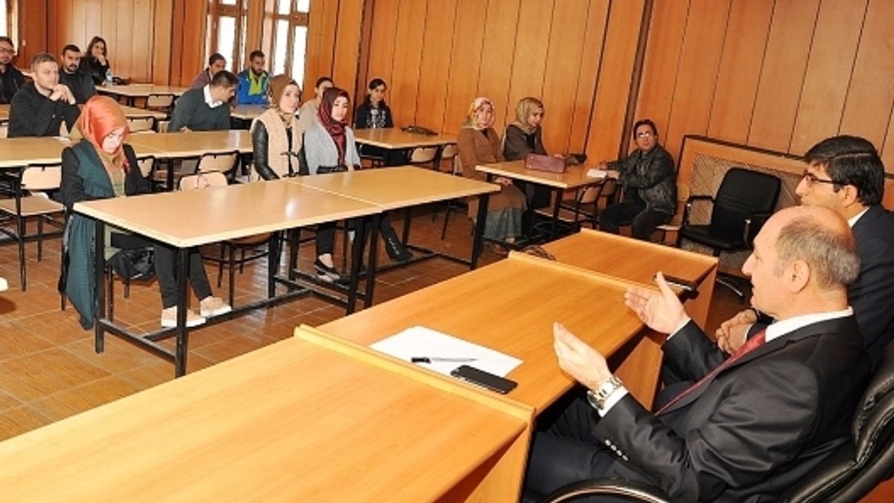 Aday öğretmen yetiştirme süreci içinde kurumları tanımak için gerçekleşen ziyaretler kapsamında, Milli Eğitim Müdürlüğünü ziyaret eden aday öğretmenlerle, müdürlük toplantı salonunda bir araya gelen Milli Eğitim Müdürü Mahmut Kurtaran, aday öğretmenlere kendisini tanıttı, adaylık sürecinin hayırlı olmasını diledi.