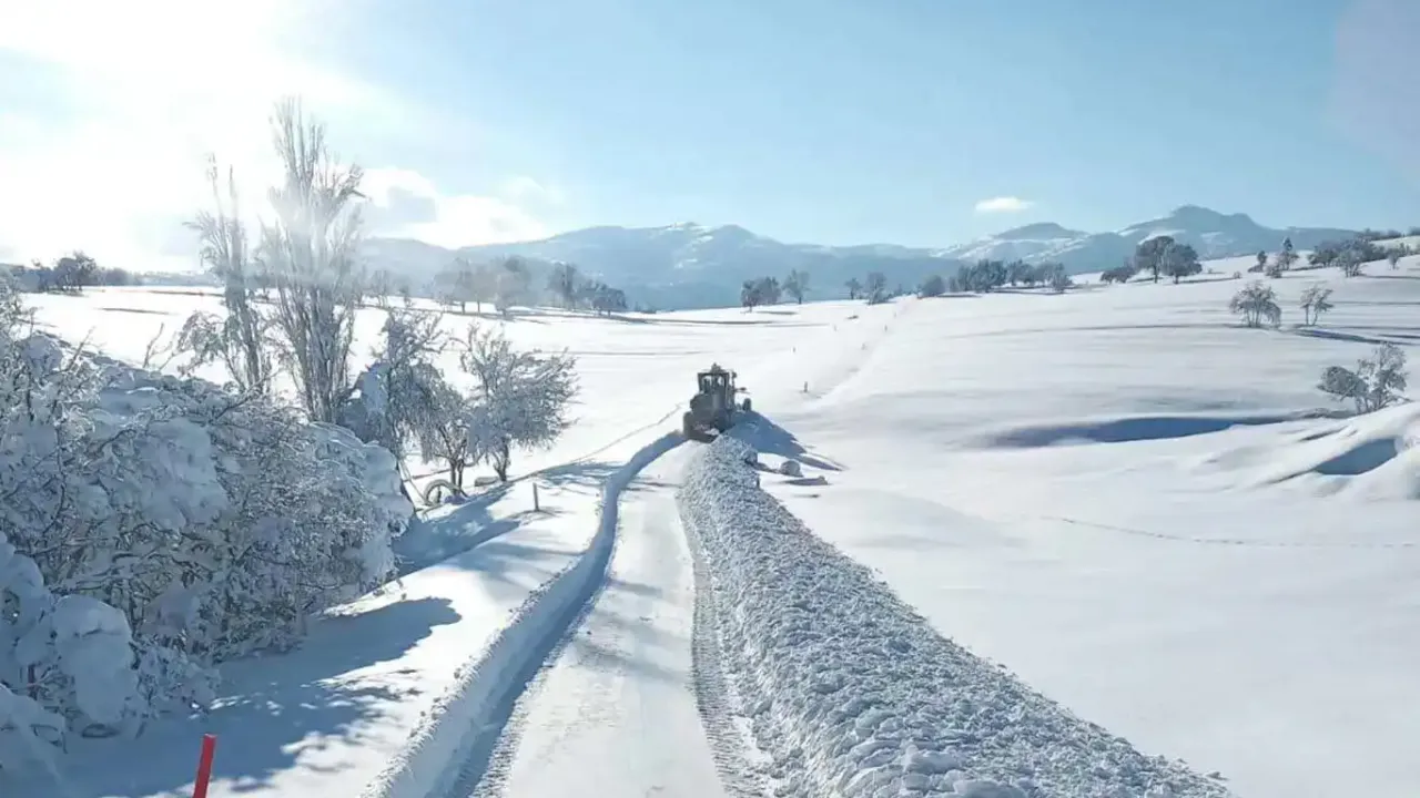 Karla mücadele ekipleri, yolların açılması için çalışmalarını sürdürüyor.