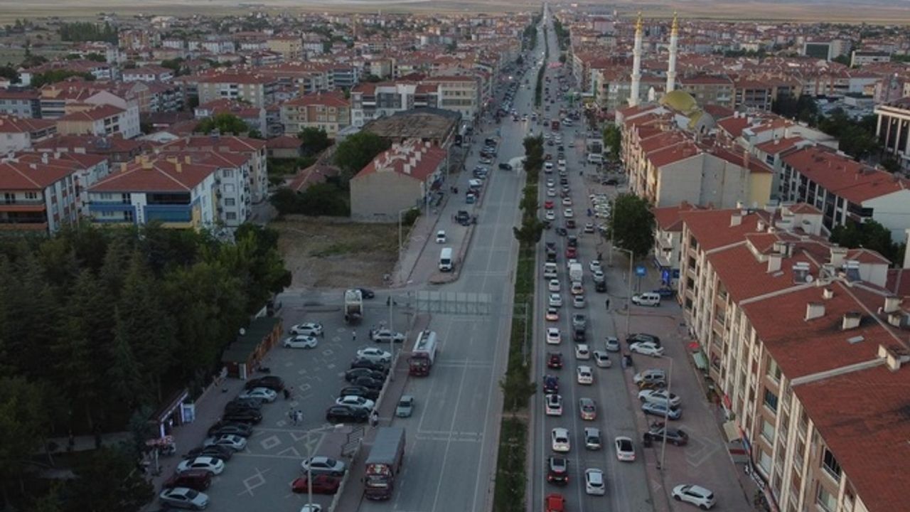 Konya'nın Kulu ilçesinden geçen Konya-Ankara kara yolunda uzun araç kuyrukları oluştu.