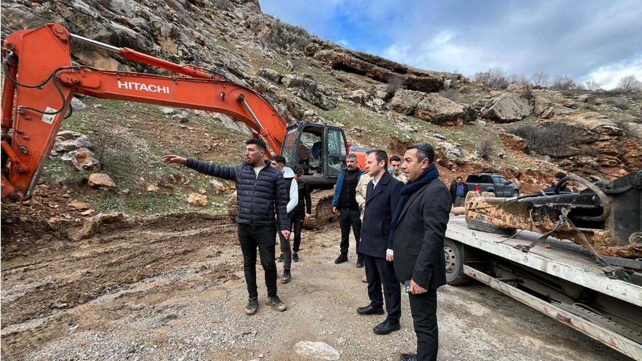 arasındaki 2,2 km’lik yol çalışmasını yerinde inceleyen Kozluk Kaymakamı Ekrem Güngör,