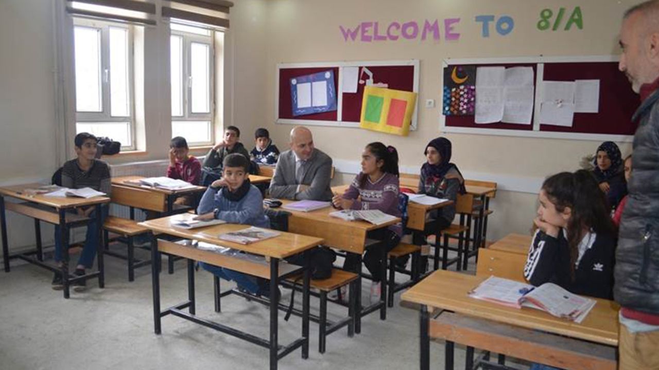 ortaokulu ziyaret ettiler. Okuldaki öğretmenlerle eğitim ve öğretim konusunda