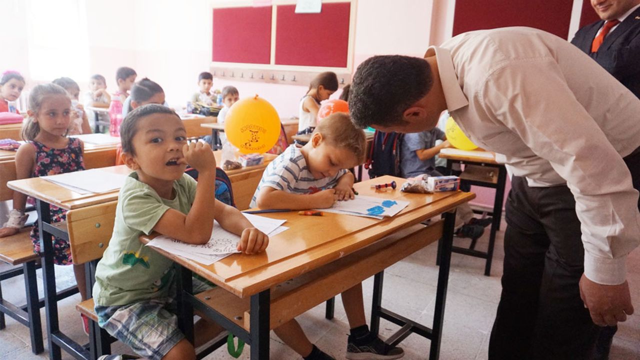 Cumhuriyet İlkokulu’nu ziyaret etti. Okula yeni başlayan miniklerin heyecanlı