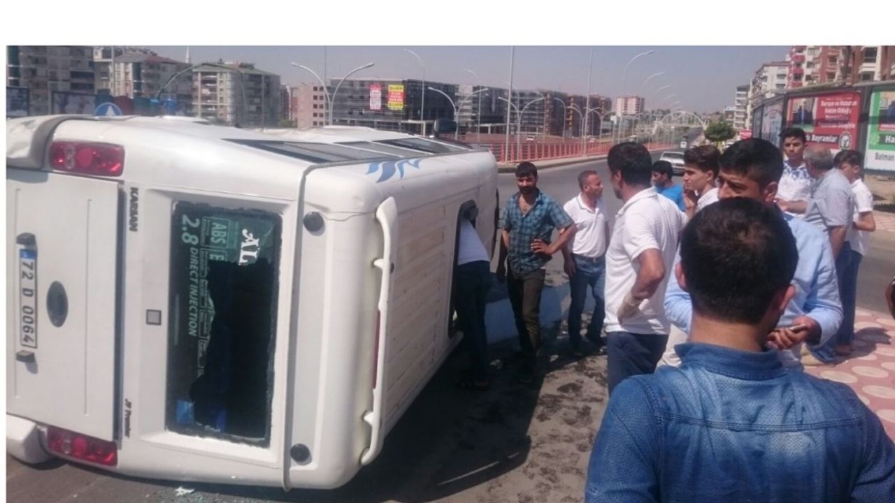 Batman merkez Gültepe mahallesinde iki şehir içi minibüsün çarpışması sonucu meydan gelen kazada 3 kişi yaralandı. Edinilen bilgiye göre, Gültepe Mahallesi Turgut Özal Bulvarı üzerinde seyreden 72 D 0064 ile 72 D 00 55 plakalı şehir içi minibüsler Gültepe Kavşağında çarpıştı. Çarpmanın etkisiyle devrilen 72 D 0064 plakalı minibüs içinde bulunan 3 kişi yaralandı.