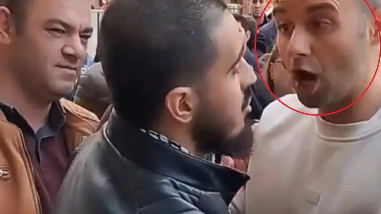Elinde Kelime-i Tevhid bayrağı olan genç, bir şahsın sözlü ve fiziki saldırısına uğradı.