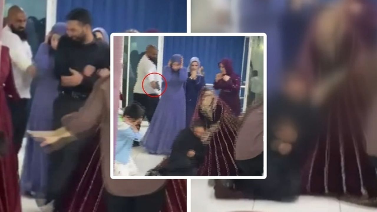 Görüntüde, kına gecesi için damatla gelinin salona girişleri sırasında bir kişinin, arkasından silahla ateş ettiği damadın yere düştüğü ve çevredekilerin kaçıştığı görülüyor.
