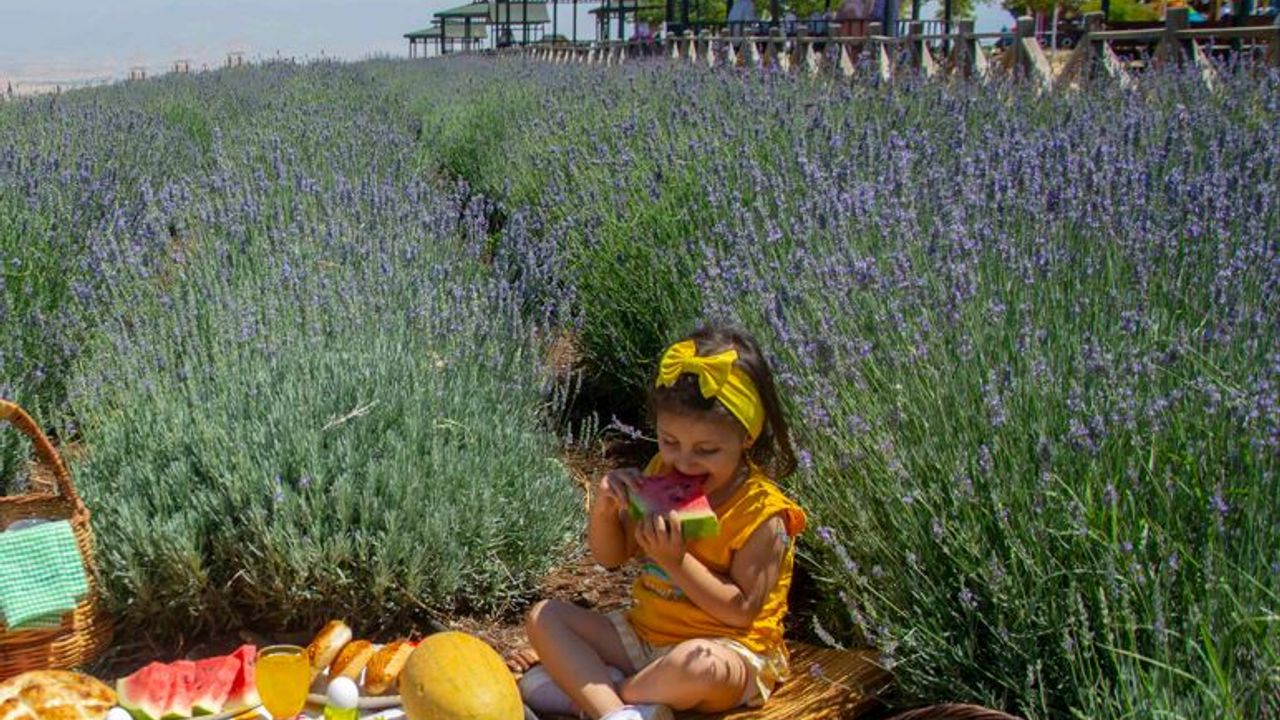 Misafirlerin, buram buram kokan lavantalar arasında piknik yapması olağanüstü