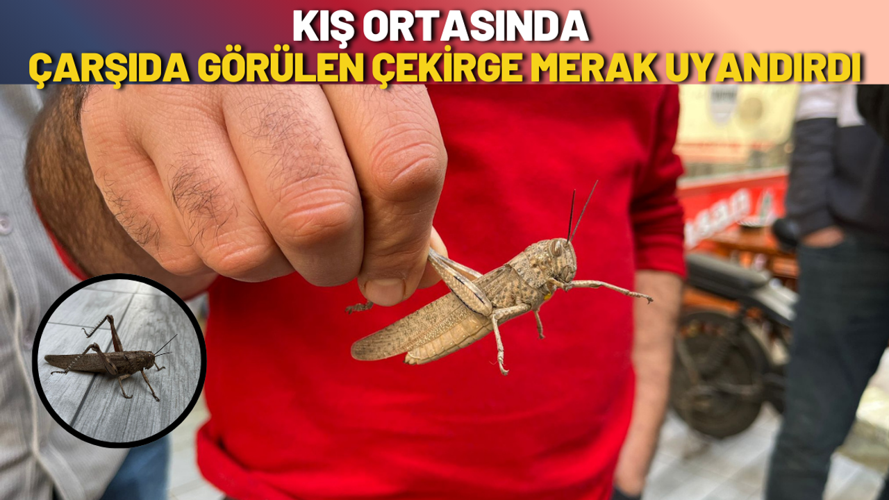 Kent merkezinde bir esnafın eline aldığı çekirge, çevredekilerin meraklı bakışları arasında incelendi. Normalde yaz aylarında karşılaşılan bu türün kışın ortaya çıkması dikkat çekici bulundu.