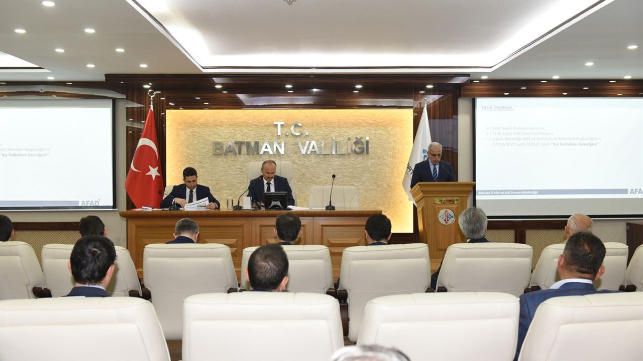 İl Afet Acil Durum ( AFAD ) Müdür Vekili Sait Yel, İl Sağlık Müdürü Semih Canpolat, İl Özel İdaresi Genel Sekreteri Abdulkadir Özer, Karayolları Bölge Şefi Fehmi Değirmen ve Batman Belediyesi Fen İşleri Müdür Vekili Afif Çelebi tarafından kış tedbirlerine yönelik kurumlarca yapılan hazırlık çalışmaların ilişkin bilgilendirme sunumları yapıldı.