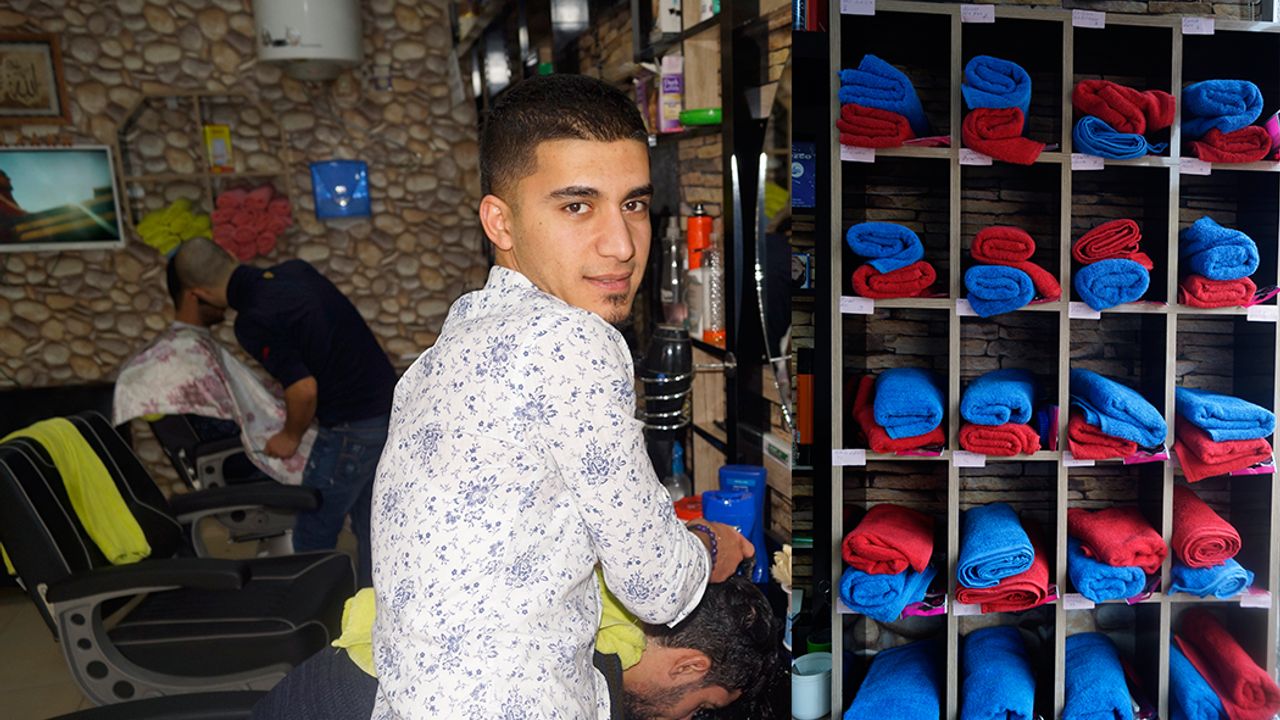 Yıllardır berberlik yapan Selam Yaşar, kişiye özel havlu ile