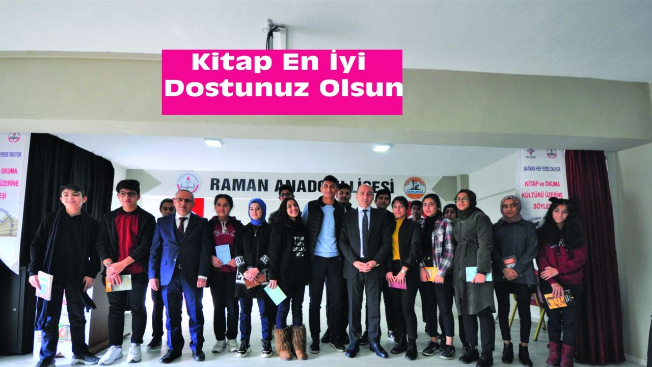 Raman Anadolu Lisesine gelişinde İl Milli Eğitim Müdürü Mahmut KURTARAN'ı Okul Müdürü Mehmet Salih ERTEKİN karşıladı. İl Milli Eğitim Müdürü KURTARAN öğrencilerle 'Kitap ve Okuma Kültürü Üzerine' yaptığı söyleşide öğrencilere: "Kitap sizin en iyi dostunuz ve arkadaşınız olsun." diyerek, kütüphanelerde kitaplarla vakit geçirmelerini ve çok kitap okumalarını tavsiye etti.