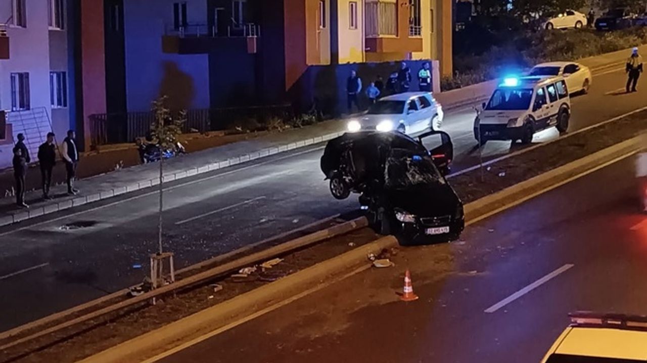Araç orta refüjde bulunan aydınlatma direğine çarparak durabildi