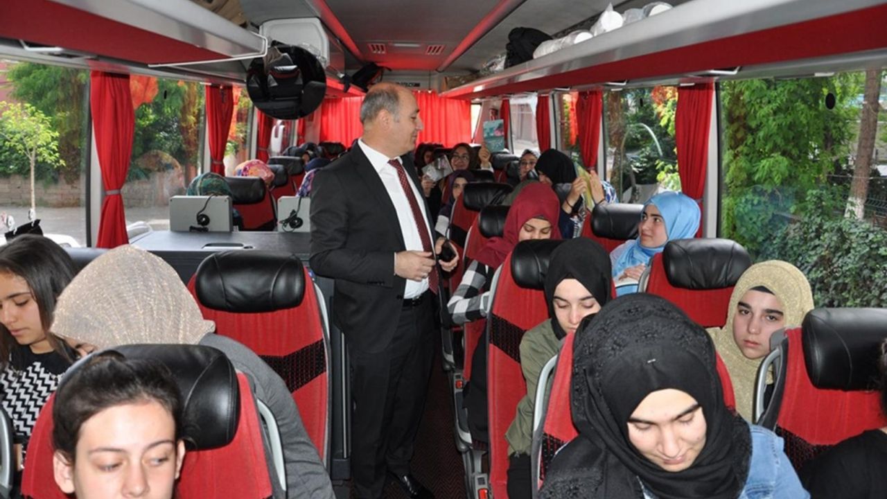 İl Milli Eğitim Müdürü Mahmut Kurtaran, 'Sevgili gençler 5 gün sürecek olan gezide kadim şehrimiz Konya'ya gidiyorsunuz. Fırsat bulduğumuzda sizi İslam medeniyetinin ve ülkemizin kadim şehirlerine götüreceğiz. Konya'nın medeniyetimizdeki önemini siz Konya'yı gezdikçe gördükçe kitaplarda yazılandan çok daha farklı olduğunu daha iyi anlayacaksınız. Bu durum İstanbul, Çanakkale, Diyarbakır, Kayseri ve diğer kadim şehirlerimiz için de geçerlidir. Bizim bütün çabamız amacımız sizin için iyi bir gelecek hazırlamak. Tabi sizin için iyi bir gelecek planlarken aslında ülkemiz için iyi bir gelecek planlamış oluruz. Yarın inşallah sizler bu ülkenin yöneticileri olacaksınız, tabi bunun için kendinizi çok iyi yetiştirmeniz lazım. Her canlıyı kendi haline bırakabilirsiniz ama insan kendi haline bırakılacak bir canlı değil çünkü insan akılla mücehhez kılınmış donatılmıştır. İnsan akılla donatılmışsa karşılığında bir şey üretecek. İnsan dışında başka bir canlıda irade var mı, yok. Ama akıl ve irade Allah tarafından biz insana lütfedilmiş, bundan dolayı biz mükellef kılınmışız.' dedi.