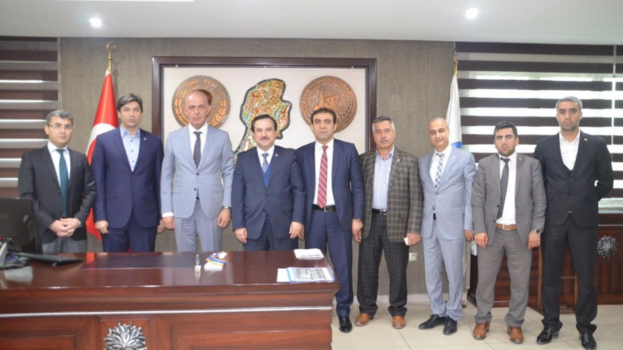 Memur Sen Genel Başkan Yardımcısı Levent USLU ve beraberindeki heyetle Başkan Vekili AKSOY'u ziyaret eden Cumhurbaşkanı Başdanışmanı KÖROĞLU, Belediye çalışmaları hakkında bilgi aldı.