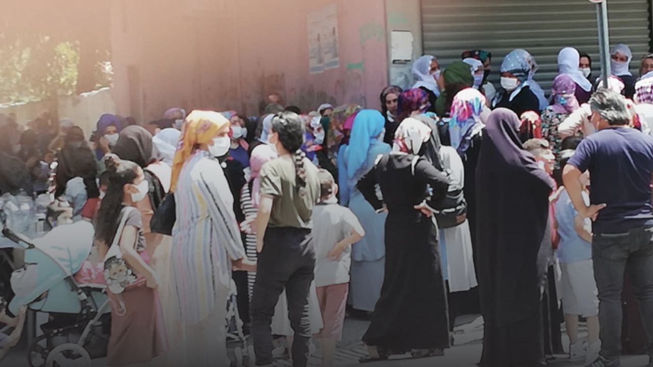 sıraya giren vatandaşlar sosyal mesafeye dikkat etmeyerek Korona Virüs