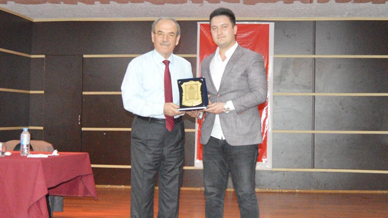 yazar Ertuğrul'a günün anısına bir teşekkür plaketi verdi.