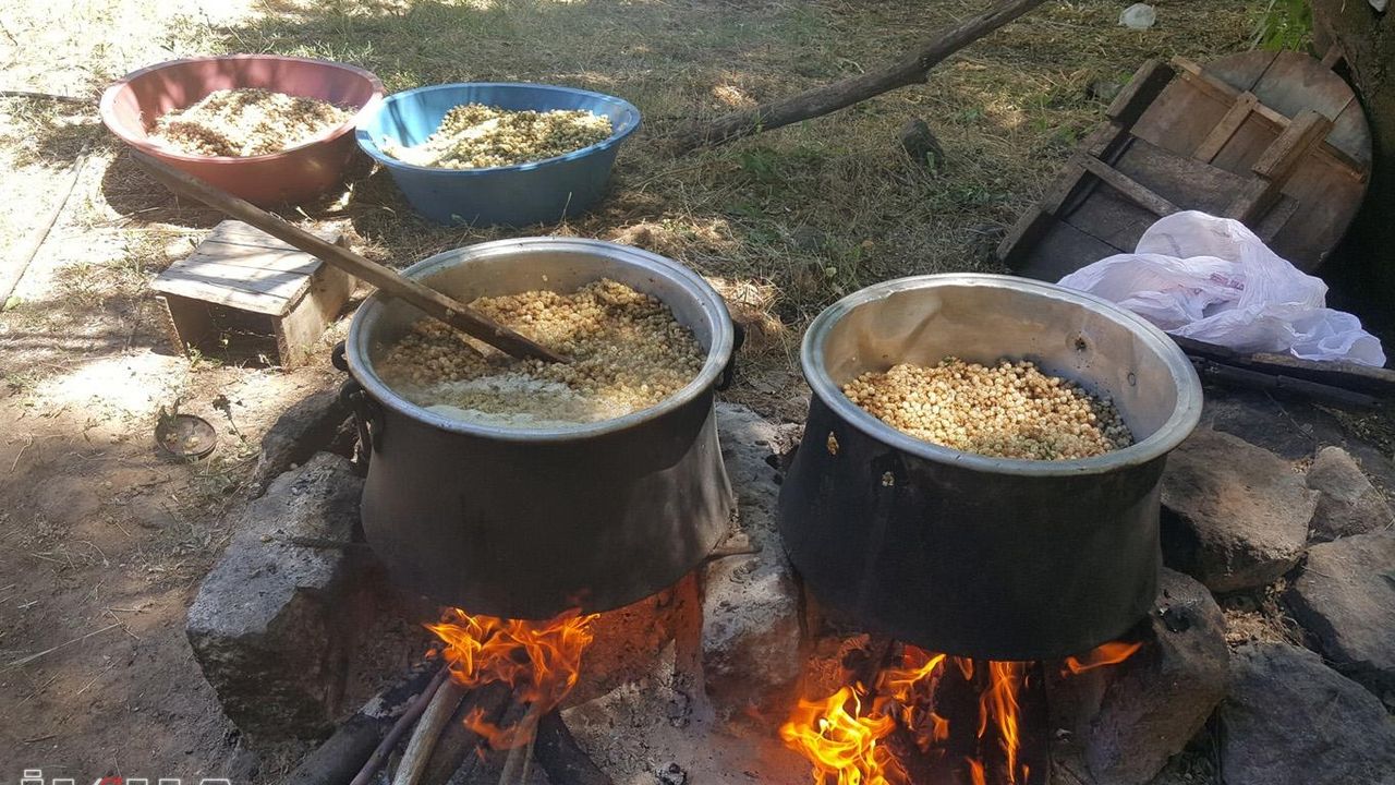 süzülerek kaba konuluyor. Kazanlara konulan dut suyu, odun ateşinde yavaş yavaş