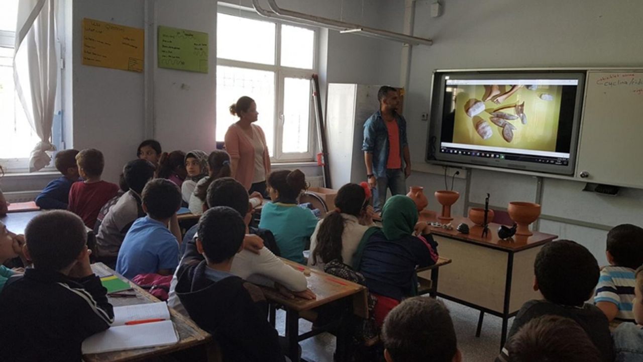 Müzeden götürülen imitasyon eserleri büyük merakla inceleyen öğrenciler, arkeologlar tarafından verilen bilgileri pür dikkat dinleyerek, 10 bin yıl önceki yaşamdan günümüz teknolojisine gelişi öğrenerek tarihi bir serüvene yelken açtılar. Öğrenciler, günün sonunda Gezici Müze etkinliklerinde akıllarında kalan soyut düşünceleri, Görsel Sanatlar öğretmeni Fatma Gördük eşliğinde resim çalışması yaptılar.