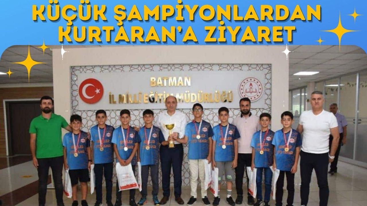 süre sohbet eden İl Milli Eğitim Müdürü KURTARAN, onların şampiyona sürecindeki